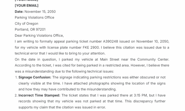 Parking Fine Appeal Letter Template