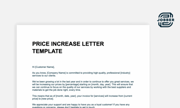 Price Increase Notification Letter Template