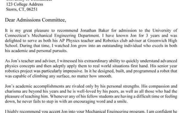 Reference Letter Template for University Admission