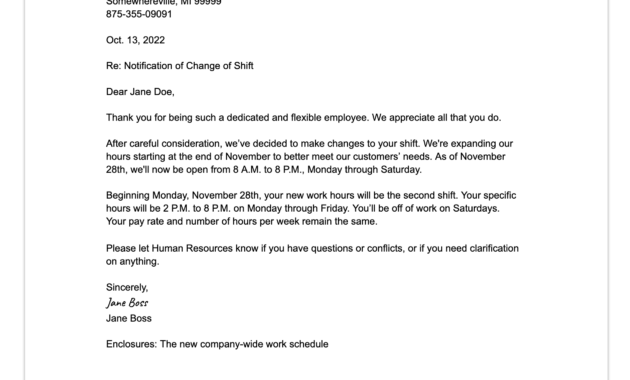Schedule Change of Working Hours Letter Template