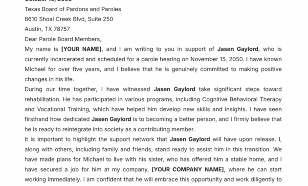 Support Letter Template for Parole
