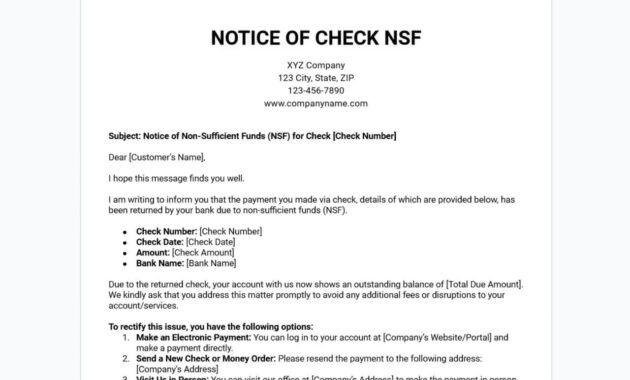 Non Sufficient Funds Letter Template