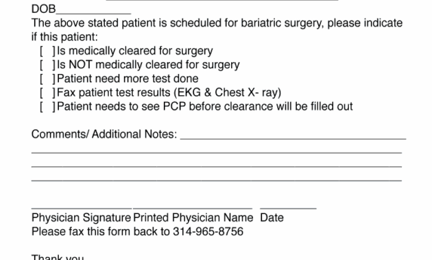 Pre Op Clearance Letter Template