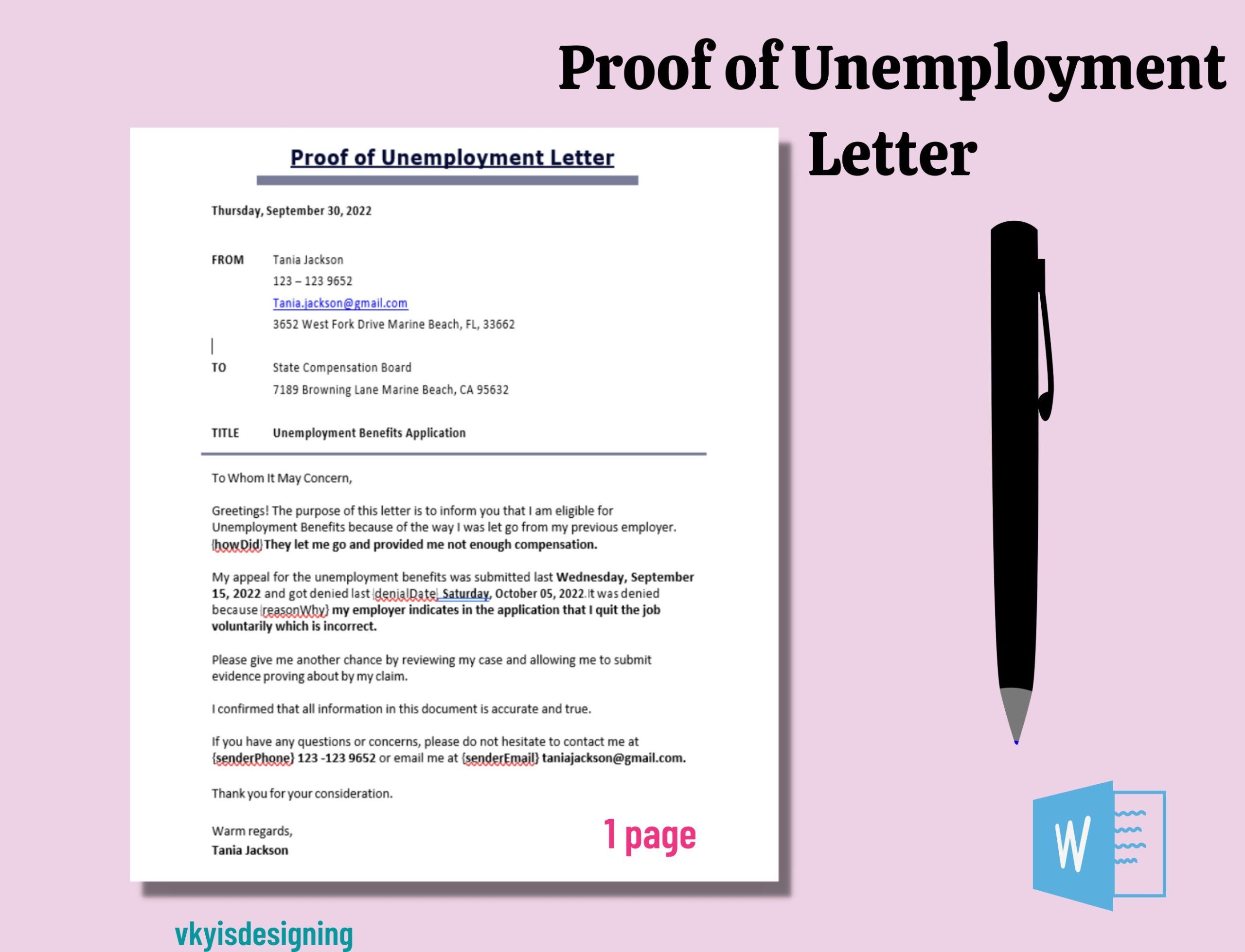 The reasons for needing this type of letter are diverse and touch upon various aspects of personal finance and government interaction. For instance, if you are struggling to make rent payments, your landlord might request proof of your unemployment status to consider a payment plan or discuss your tenancy options. Similarly, banks or credit card companies may ask for this documentation if you are seeking a loan modification, deferment of payments, or relief from late fees. It’s their way of assessing your current financial capacity and determining what assistance they might be able to offer.
